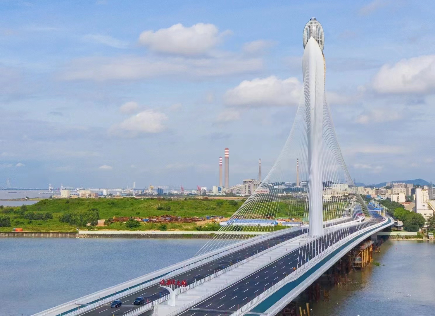 6月30日,由集团承担设计的东莞滨海湾大桥正式通车。滨海湾大桥是世界上首次采用“钢-钢壳混凝土组合混合塔”的斜拉桥,同时也是国内目前建成跨度最大、桥面最宽的独塔扭索面斜拉桥。
