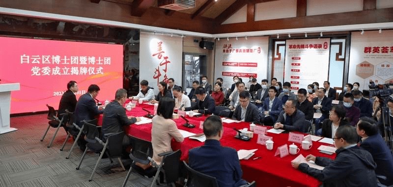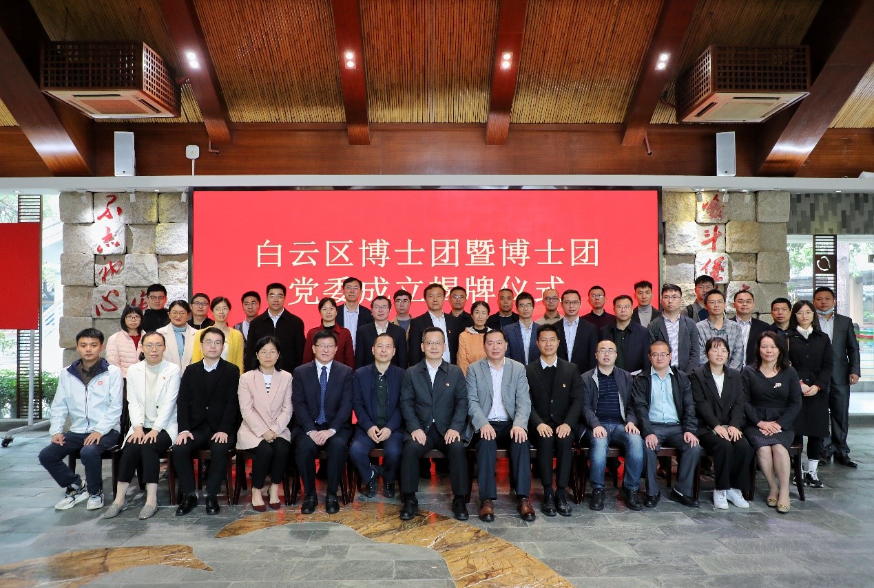白云区博士团是在白云区委人才工作领导小组办公室指导下,由工作在白云区辖内的博士人才组成的人才交流平台。白云区博士团下设各行业领域博士团,在目前博士人才较多的生物医药、美丽健康、轨道交通、现代都市农业、新一代信息技术、制造业、教育行业、建筑行业领域成立8个行业领域博士分团。白云区博士团党委同步揭牌成立,旨在加强对白云区各领域博士的政治引领,把党建力量贯穿到博士人才工作中。