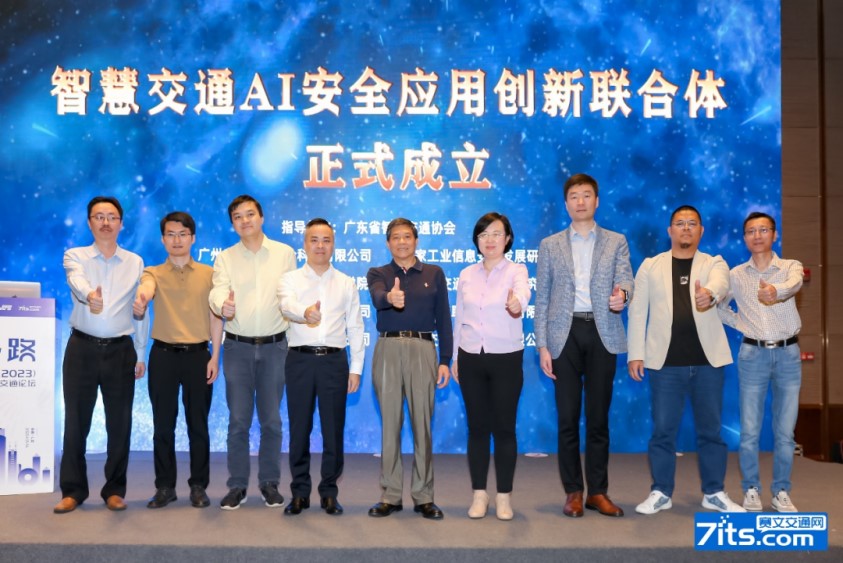 论坛第二日,“智慧交通AI安全应用创新联合体”正式成立。该联合体由广东省智能交通协会作为指导单位,由广州市属国有独资企业广州无线电集团广州广电信息安全科技有限公司牵头,与我公司以及国家工业信息安全发展研究中心、华南理工大学未来技术学院、广东龙芯中科电子科技有限公司、广州市路联信息科技有限公司、视云融聚(广州)科技有限公司、广州交嵌信息技术有限公司共8家单位联合共建。