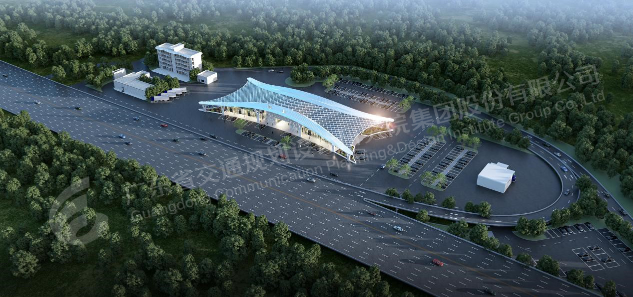 址山服务区是佛开高速南段改扩建工程项目的一部分,认真贯彻落实省交通集团“十四五”发展规划和服务区“一路一策、一区一品”建设理念工作部署和要求,整体布局设计借鉴机场航站楼模式,将充电设施与服务楼作一体化设计,凸显新能源服务区的新型设计特色。