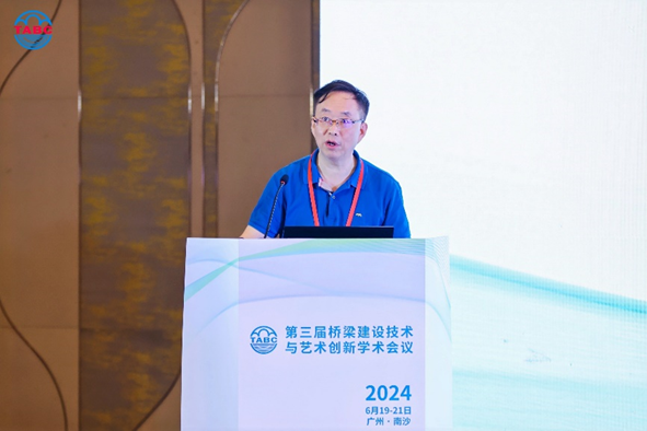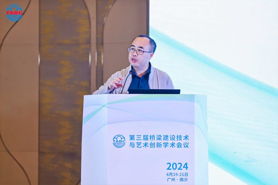 广东省工程勘察设计大师、公司首席专家梁立农作题为《海湾地区桥梁技术与艺术的融合创新探索》的主旨报告